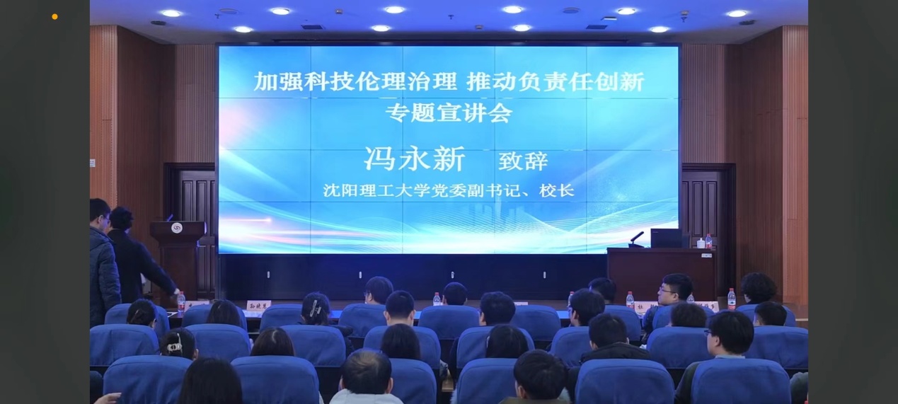 在这堂科技创新视听盛宴中,沈阳理工大学校长冯永新汇报了落实辽宁全面振兴新突破三年行动的典型方案以及开展科研诚信建设新举措;辽宁省科学技术厅党组成员、副厅长陶隽表示前沿领域科技活动正深刻改变着人类社会的生产生活方式,带来了复杂的价值选择和伦理挑战,唯有加强科技伦理治理,防范化解科技活动带来的伦理风险,才能真正推动科技事业健康发展,为实现高水平科技自立自强提供有力支撑;报告主讲人李伦教授从科技伦理的历史背景及重要性和科技强国需要科技伦理保驾护航两个方面深入浅出地为大家作了主题报告。