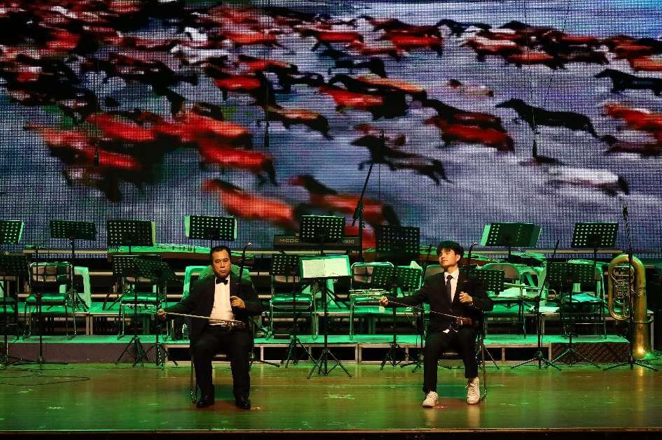 整场演出包含器乐合奏《欢庆》《辽科晨曲》《西班牙斗牛士》、民乐合奏《敕勒歌》《战马奔腾》、女生齐唱《好日子》《去有风的地方》、女声独唱《香槐树下》、乐队演奏《公路之歌我们的时光》、拉场戏《歌唱英雄邓铁梅》、大合唱《锦瑟》《民族复兴任在肩》《深深的祝福》等13首曲目,匠心独具、“多元”融合,让大家感受别具一格的音乐魅力。台上的演奏与歌唱、台下的掌声与感动,抒发了辽科人的豪情壮志和对学校的美好祝福。