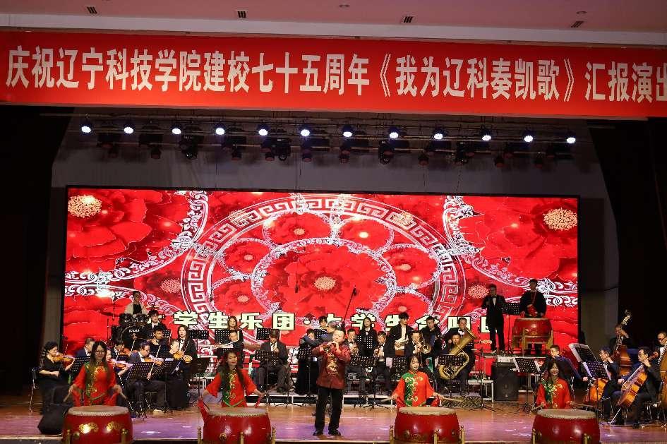 为热烈庆祝辽宁科技学院建校75周年,活跃校园文化氛围,提升美育质量,加强美育熏陶,进一步促进学校美育稳步推进,向全校师生汇报展示一年来学校艺术社团美育育人的丰硕成果,11月22日,由校团委、学生工作处主办,学校大学生乐团、大学生合唱团承办的“庆祝建校75周年‘我为辽科奏凯歌’”主题汇报演出在大学生活动中心举行。校党委书记韩劲松、纪委书记崔来成、副校长罗旭东及学校相关职能部门负责人观看了演出。此外,参加演出的还有辽宁科技学院校友乐团,他们怀着对母校的热爱,与在校学生同台演绎,共同为辽科建校75周年献上最真挚的贺礼。