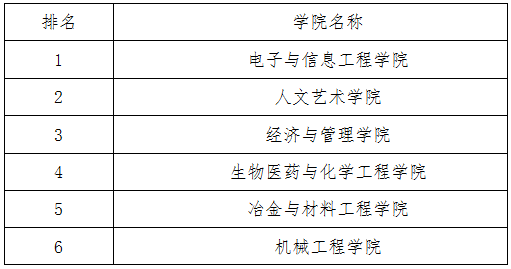 本次大赛吸引了来自学校7个学院百余名操舞爱好者参赛,经过11月19日的初赛,最终有14支队伍进入决赛,参加两个大项的角逐。在学院对决项目中,电子与信息工程学院、人文艺术学院和冶金与材料工程学院分获前三名;在自由组队项目中第八组张诗阳等8人、第七组孙晨淇等4人分获前两名,第四组唐智慧、崔芮溪和第六组李昊阳、王泽飞并列第三名。经过两个项目的加权得分计算,最终得出本届操舞大赛决赛总排名。
