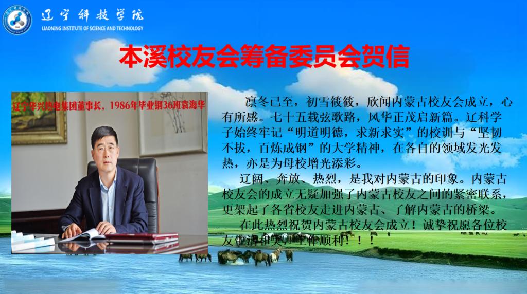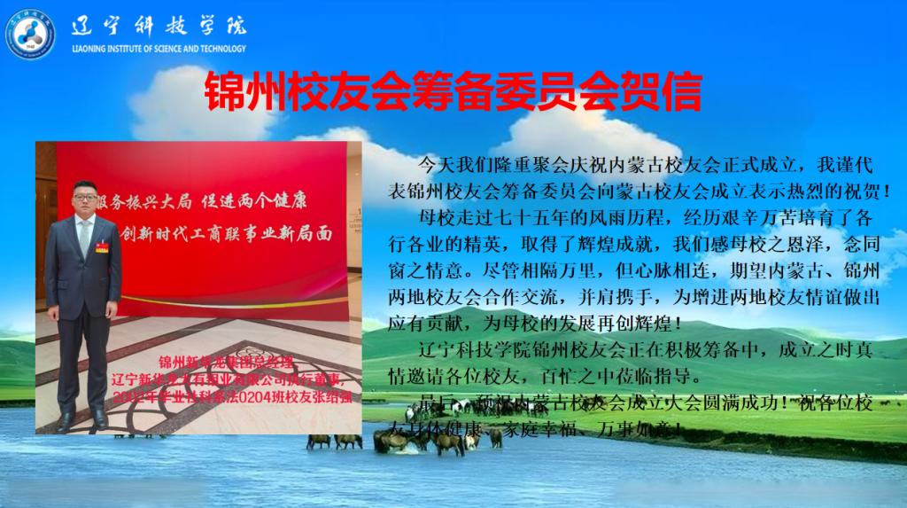 草原万里传心声,山川异域意相通。四川校友会和本溪、锦州、营口校友会筹备委员会纷纷发来贺信,共同庆祝辽宁科技学院内蒙古校友会正式成立。
