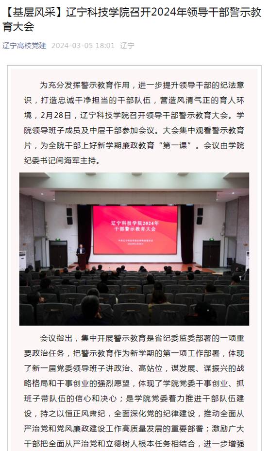 【辽宁高校党建】【基层风采】辽宁科技学院召开2024年领导干部警示教育大会-5177棋牌