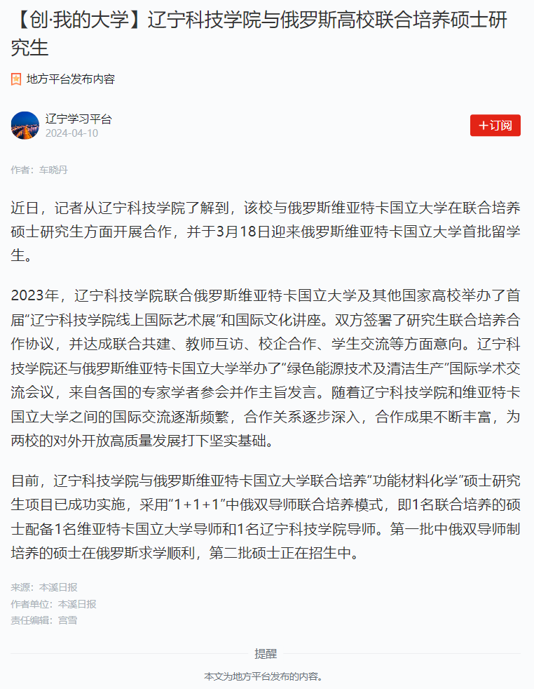 【学习强国】【创·我的大学】辽宁科技学院与俄罗斯高校联合培养硕士研究生-5177棋牌