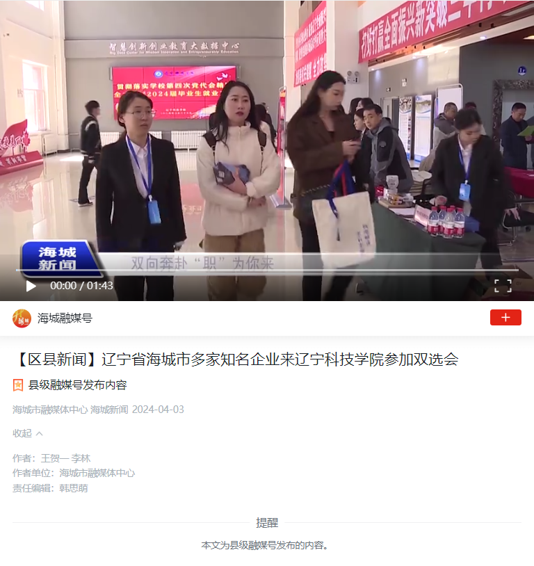 【学习强国】【区县新闻】辽宁省海城市多家知名企业来辽宁科技学院参加双选会-5177棋牌