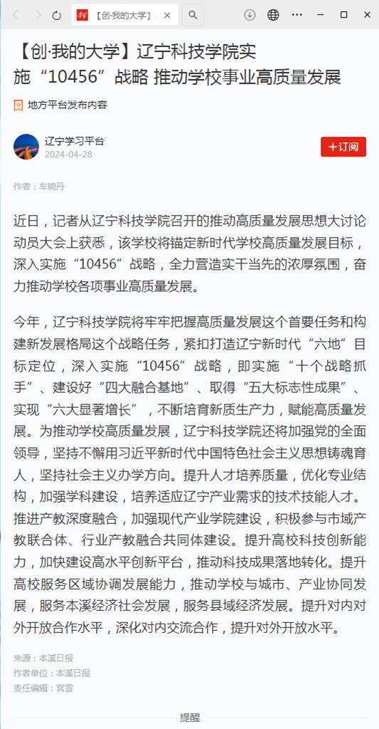 【学习强国】【创•我的大学】辽宁科技学院实施“10456”战略 推动学校事业高质量发展-5177棋牌