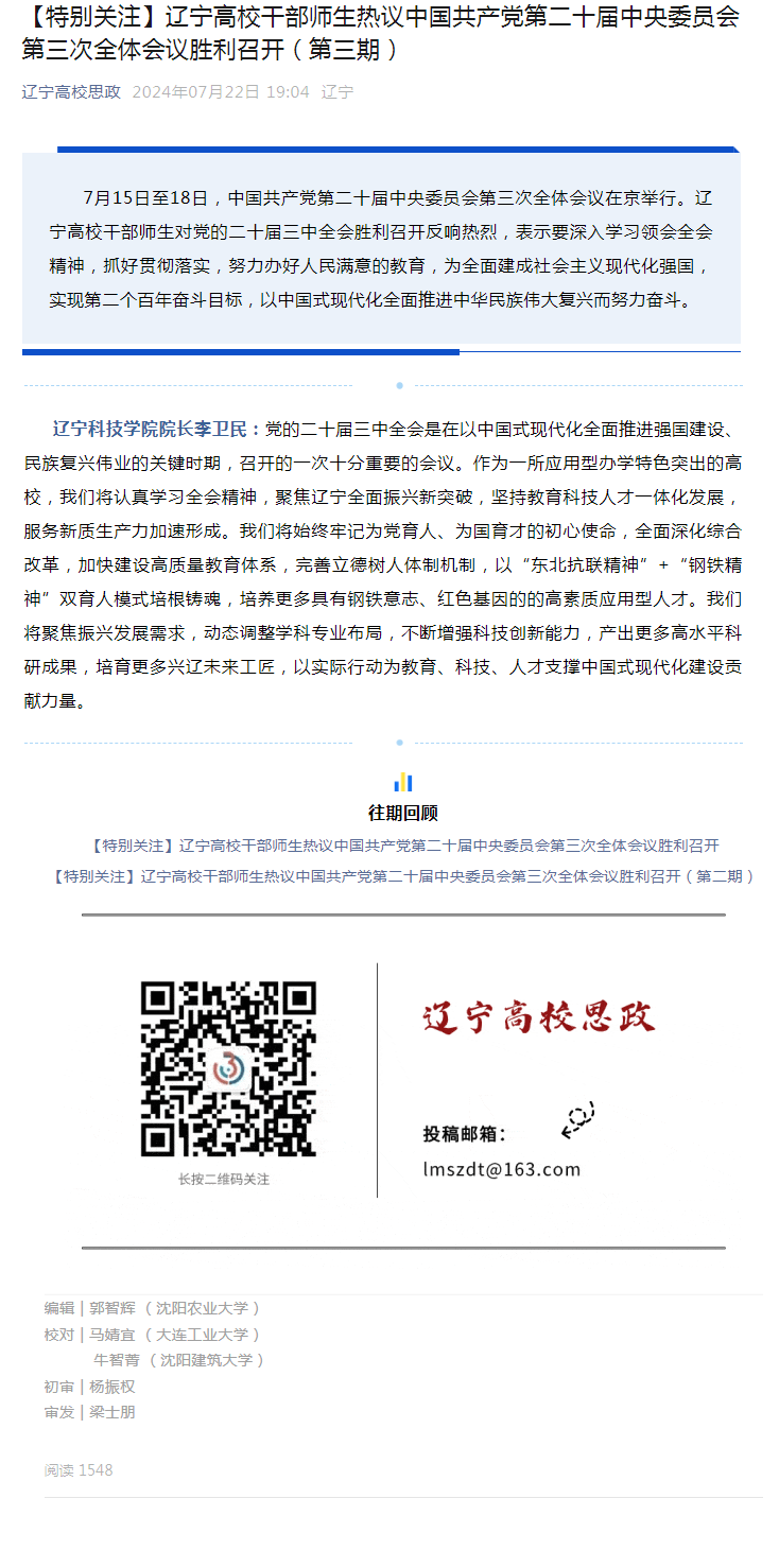 【辽宁高校思政】【特别关注】辽宁高校干部师生热议中国共产党第二十届中央委员会第三次全体会议胜利召开(第三期)-5177棋牌