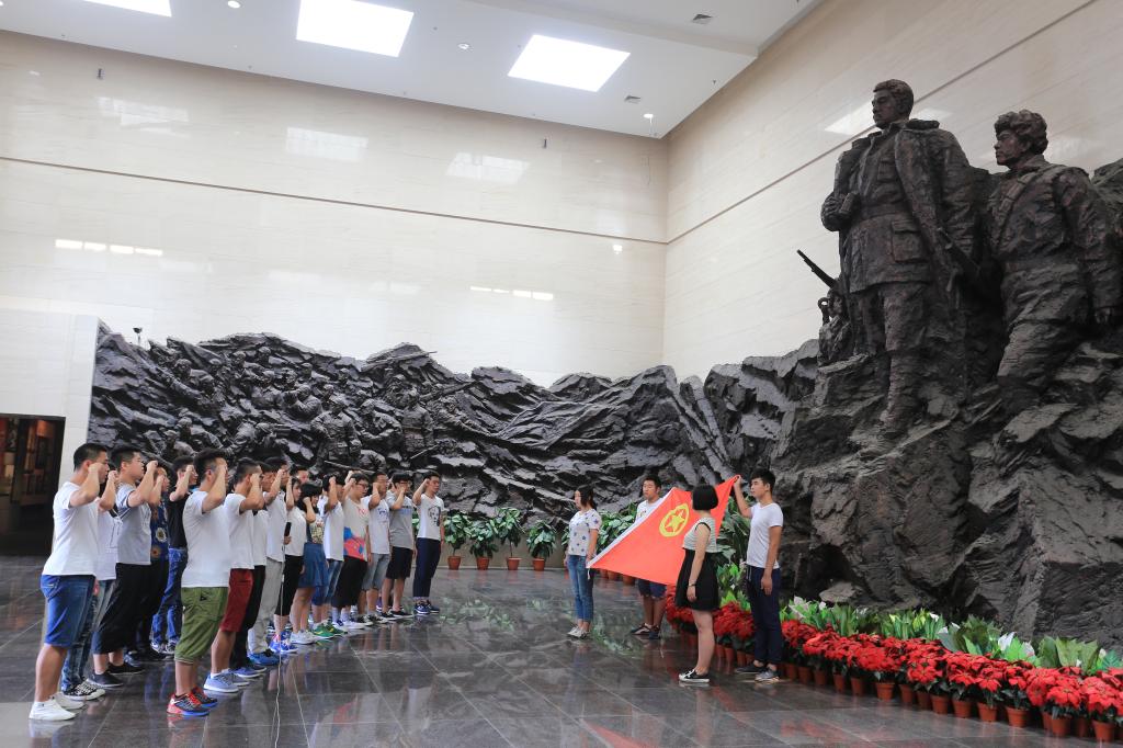 图为同学们在本溪抗联史实纪念馆内庄严宣誓