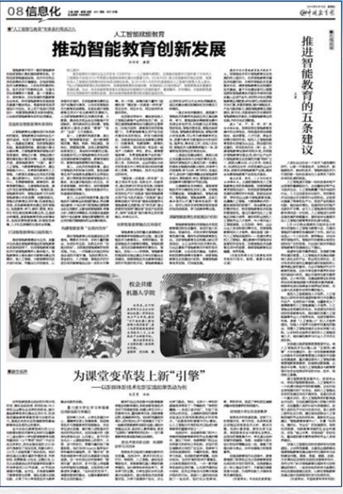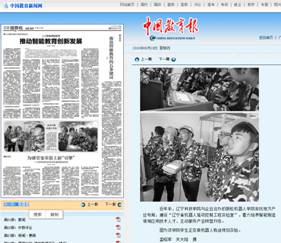 2019年9月19日,《中国教育报》第8版以《校企共建机器人学院》为题宣传了我校新松机器人学院主动服务地方,培养应用型人才的报道。近年来,辽宁科技学院与企业合办的新松机器人学院依托地方产业布局,建设“辽宁省机器人驱动控制工程实验室”,着力培养智能制造领域应用技术人才,主动服务产业转型升级。
