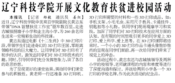 《辽宁科技学院开展文化教育扶贫进校园活动》发表在《桓仁县报》2019年11月15日第二版