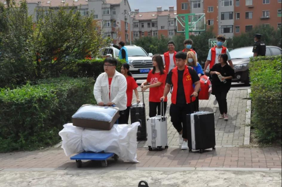 用“心”迎“新”解难事。9月10日至13日,2021级本科生新生分批次报到注册。在迎新工作中,学院团委坚持从师生需求出发,以解难题、办实事为出发点,组织阳光青年志愿者协会的志愿者们积极开展“我为同学做件事”活动。测体温、提行囊、搬行李、报流程,每一个环节都给新生留下了“温暖辽科”的深刻印象;从校门口到报到处,从报到处到寝室,校园里随处可见“红马甲”的身影,红色的背影成了一道靓丽的风景。