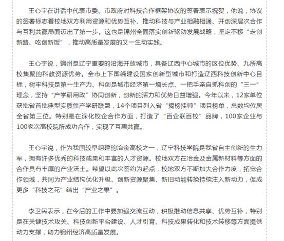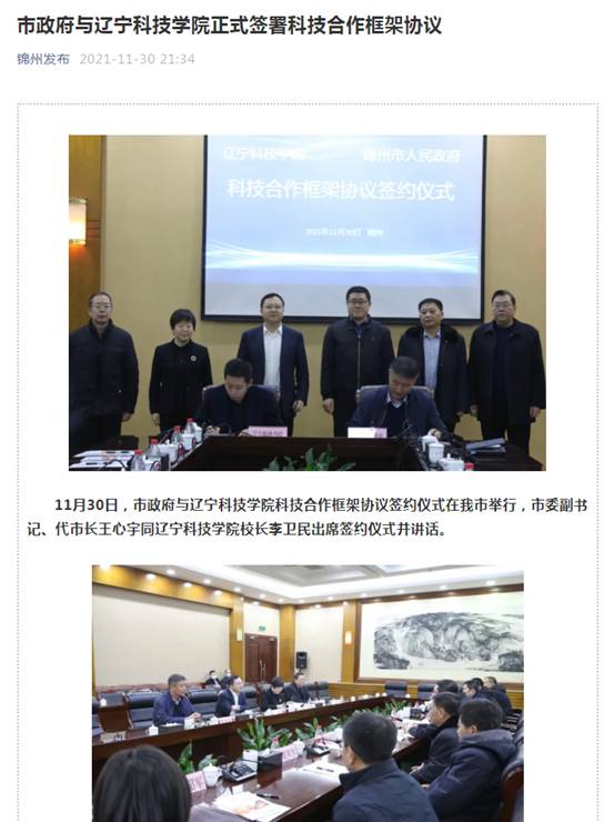 【锦州发布】市政府与辽宁科技学院正式签署科技合作框架协议-5177棋牌