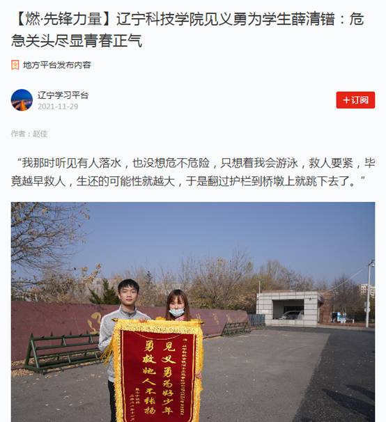 【学习强国】【燃·先锋力量】辽宁科技学院见义勇为学生薛清镨:危急关头尽显青春正气-5177棋牌