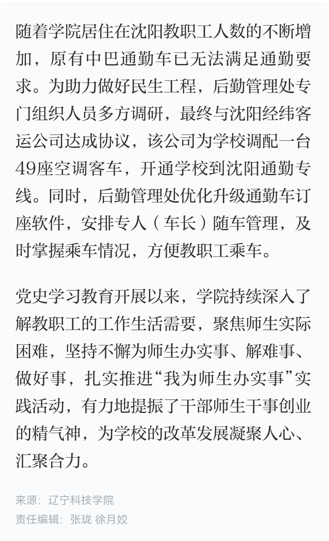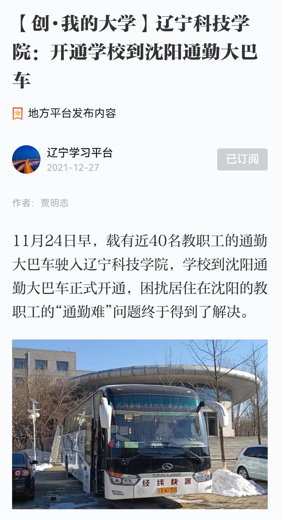 【学习强国】【创·我的大学】辽宁科技学院:开通学校到沈阳通勤大巴车-5177棋牌