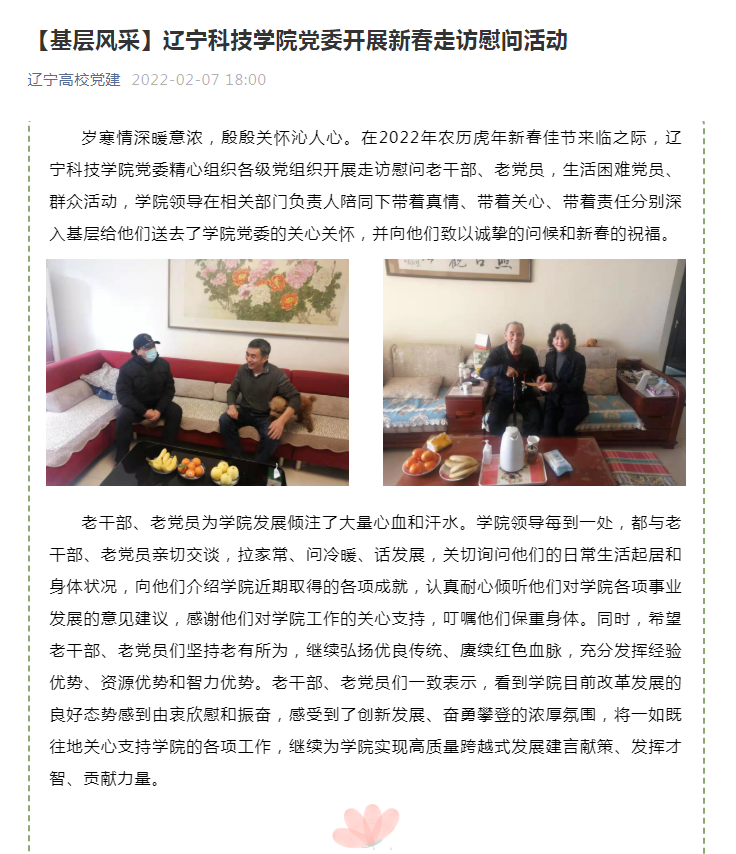【辽宁高校党建】【基层风采】辽宁科技学院党委开展新春走访慰问活动-5177棋牌