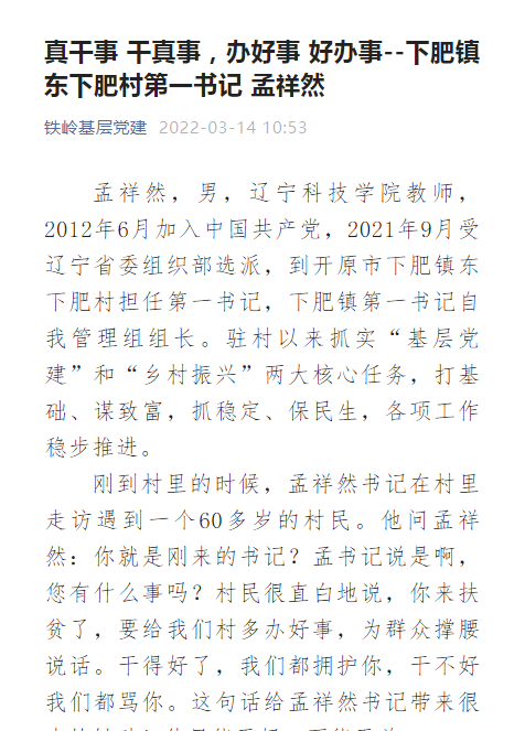 辽宁科技学院驻铁岭市开原下肥镇东下肥村第一书记孟祥然