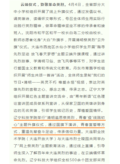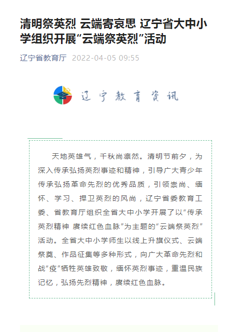 【辽宁省教育厅】清明祭英烈 云端寄哀思 辽宁省大中小学组织开展“云端祭英烈”活动-5177棋牌