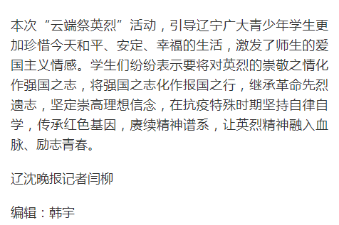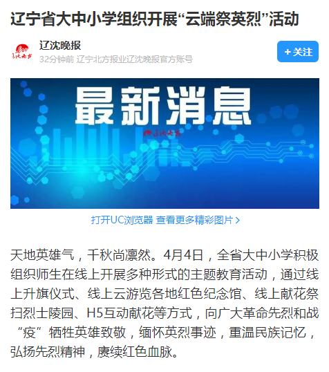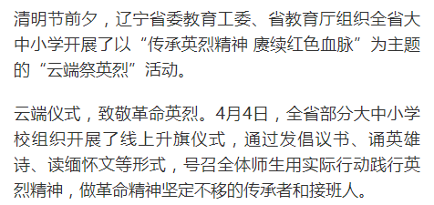 【辽沈晚报】辽宁省大中小学组织开展“云端祭英烈”活动-5177棋牌