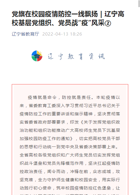 【辽宁省教育厅】党旗在校园疫情防控一线飘扬 | 辽宁高校基层党组织、党员战“疫”风采②-5177棋牌