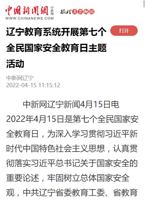 【中国新闻网】辽宁教育系统开展第七个全民国家安全教育日主题活动-5177棋牌