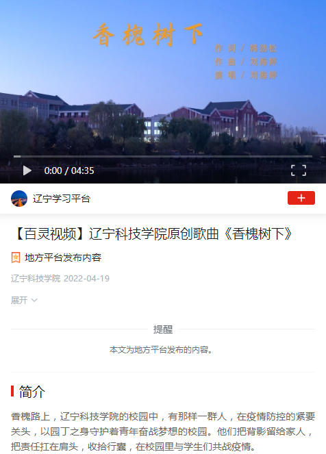 【学习强国】【百灵视频】辽宁科技学院原创歌曲《香槐树下》-5177棋牌