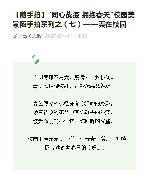 【辽宁高校思政】【随手拍】“同心战疫 拥抱春天”校园美景随手拍系列之(七)-5177棋牌