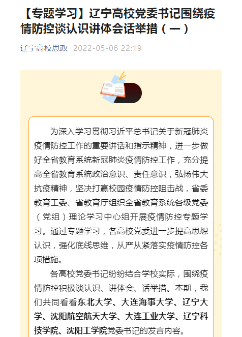 【辽宁高校思政】【专题学习】辽宁高校党委书记围绕疫情防控谈认识讲体会话举措(一)-5177棋牌