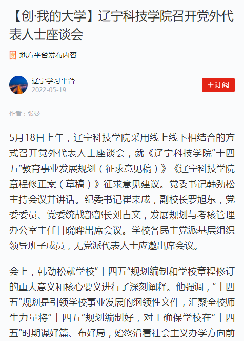 【学习强国】【创·我的大学】辽宁科技学院召开党外代表人士座谈会-5177棋牌