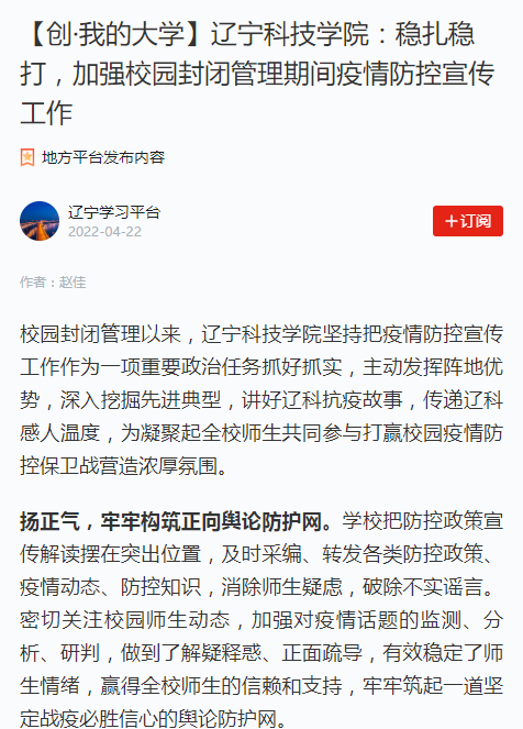 【学习强国】【创·我的大学】辽宁科技学院:稳扎稳打,加强校园封闭管理期间疫情防控宣传工作-5177棋牌
