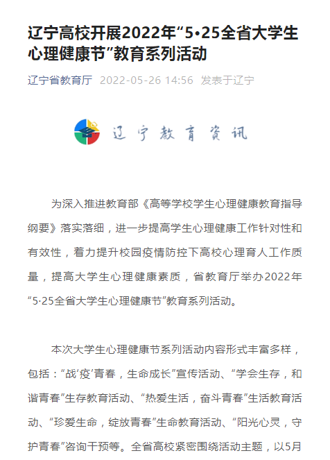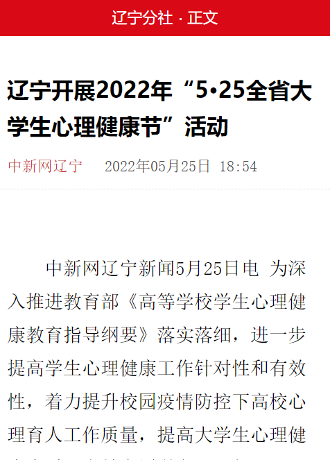 【辽宁省教育厅】【中新网辽宁】辽宁开展2022年“5·25全省大学生心理健康节”活动-5177棋牌