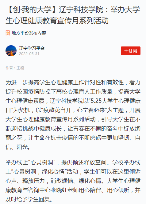 【学习强国】【创·我的大学】辽宁科技学院:举办大学生心理健康教育宣传月系列活动-5177棋牌