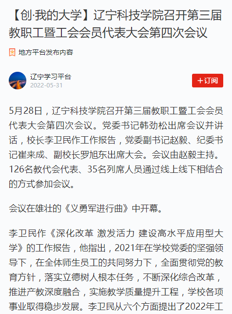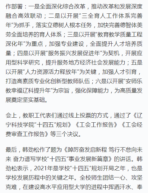 【学习强国】【创·我的大学】辽宁科技学院召开第三届教职工暨工会会员代表大会第四次会议-5177棋牌