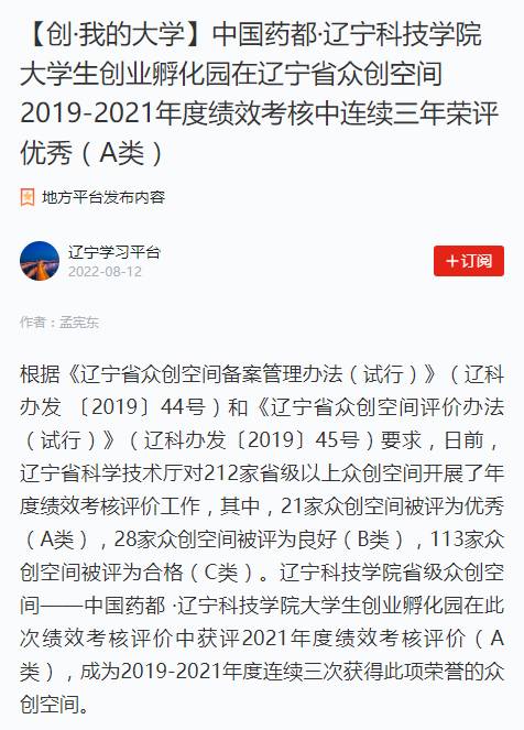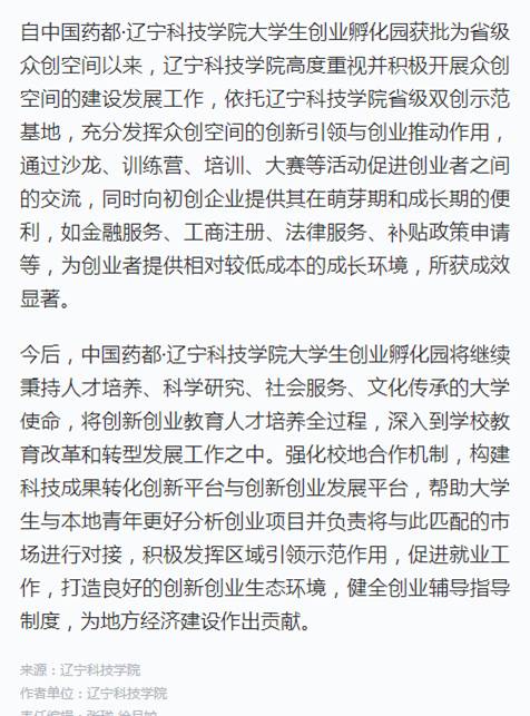 【学习强国】【创·我的大学】中国药都·辽宁科技学院大学生创业孵化园在辽宁省众创空间2019-5177棋牌