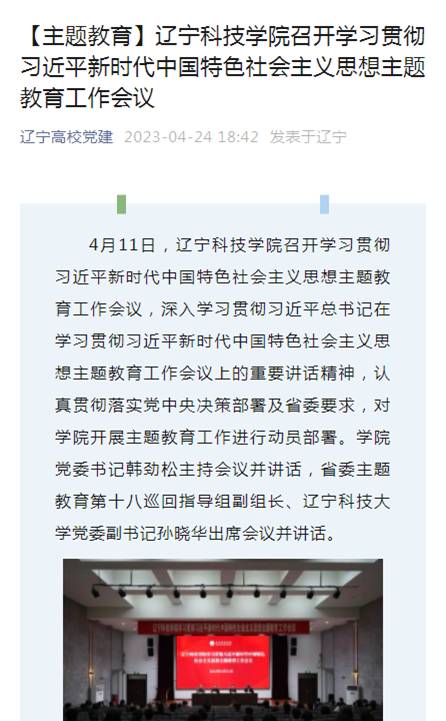 【辽宁高校党建】【主题教育】辽宁科技学院召开学习贯彻习近平新时代中国特色社会主义思想主题教育工作会议-5177棋牌