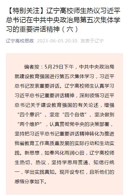 【辽宁高校思政】【特别关注】辽宁高校师生热议习近平总书记在中共中央政治局第五次集体学习的重要讲话精神(六)-5177棋牌