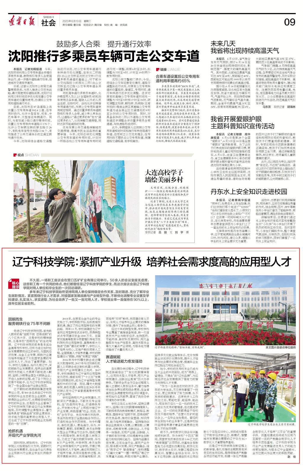 6月13日,《辽宁日报》专版刊载辽宁科技学院《紧抓产业升级 培养社会需求度高的应用型人才》