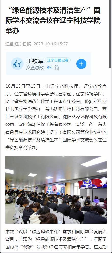 【辽宁日报·辽望】“绿色能源技术及清洁生产”国际学术交流会议在辽宁科技学院举办-5177棋牌