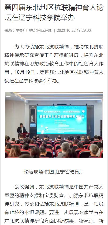 【中央广电总台国际在线】第四届东北地区抗联精神育人论坛在辽宁科技学院举办-5177棋牌