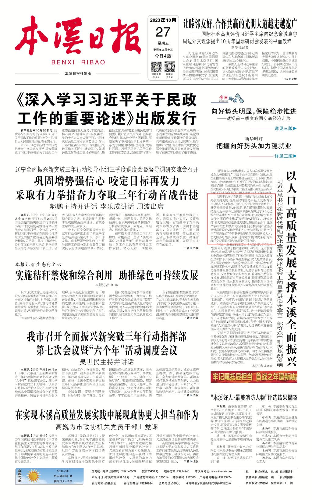 【本溪日报】习近平总书记在新时代推动东北全面振兴座谈会上的重要讲话在全市干部群众中引发热烈反响-5177棋牌