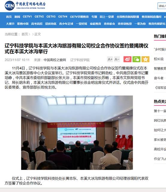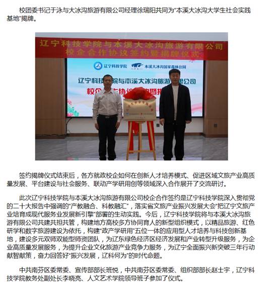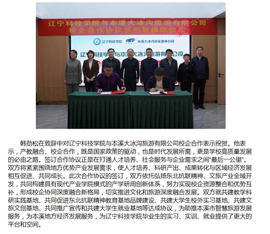 【中国教育网络电视台】辽宁科技学院与本溪大冰沟旅游有限公司校企合作协议签约暨揭牌仪式在本溪大冰沟举行-5177棋牌