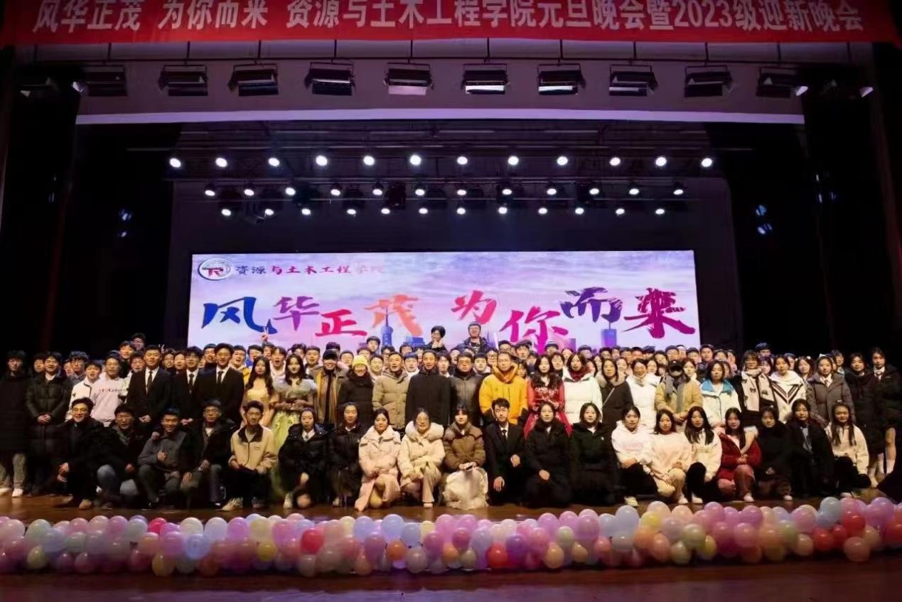 韶华不负新征程,青春作笔谱华章。12月15日下午,资源与土木工程学院“风华正茂为你而来”主题元旦晚会暨2023级迎新晚会于大学生活动中心举办。学院领导班子、全体辅导员及2023级新生欢聚一堂,共享这场视听盛宴。