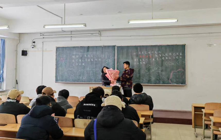 1月5日中午,机械工程学院辅导员孙静芬在给学生们开完最后一次班会后,正式结束自己41年的执教生涯。得知这是孙静芬老师在三尺讲台的最后一次班会,机电bz229和机电bz2210的学生们不约而同地为她准备了一束代表美好、感激的粉色康乃馨,一张写满祝福的贺卡,一个刻着美好祝福的挂坠……大家以最诚挚的心表达对孙老师的感恩之情。