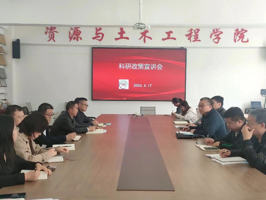 为贯彻落实学校第四次党代会精神,发挥政策引领作用,4月17日,科技处处长黄志东、社会服务中心主任杜成武、副处长赵泽凌等一行7人受邀到资源与土木工程学院开展科技政策宣讲。资源与土木工程学院领导班子、博士教师、科研团队骨干参加了会议。