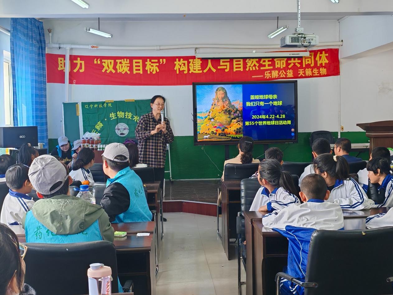 为深入贯彻习近平新时代中国特色社会主义思想,发挥高校基层党组织引领科技团队服务地方的领航功能,宣传“珍爱地球,人与自然和谐共生”生态文明理念,4月25日,生物医药与化学工程学院党总支与本溪市张其寨中学党委联合开展了“党建引领绿色低碳进校园——世界地球日”公益活动。张其寨中学校长徐胜勇、副校长燕东、教导处主任杨桂荣、德育处主任范莉,“乐酵”大学生创新创业公益团队、天籁生物技术团队指导教师李雪梅、高颖及团队成员,生物医药与化学工程学院党员师生代表,张其寨中学五、六年级师生参加了此次活动。