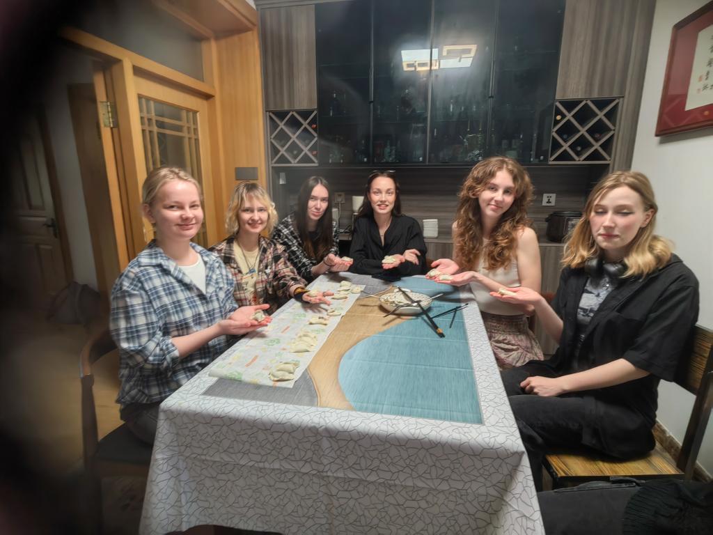 为使留学生对汉字感受更深,文化名师于老师为留学生们介绍了汉字的起源、演变和特点,让留学生了解汉字的历史和文化内涵,同时了解了象形字、指事字、会意字、形声字造字法,借助十二生肖的象形字,生动展现了汉字故事及其背后的思想价值和精神力量,帮助留学生们更轻松地记忆汉字词。留学生还体验了包饺子、品尝了中国茶。从揉面、和馅儿、到上手包成型,留学生们手捧着饺子皮,小心翼翼地将饺子馅儿放上去,接着又用各具特色的手法包出了款式新颖、各具特色的独家饺子,吃着自己的劳动成果,她们的喜悦之情溢于言表。中国文化功底深厚的于老师向留学生们介绍了中国茶文化以及常见的茶叶品种和各自的特点,并详细讲述整套茶具的各个组成部分和作用,逐步演示泡茶的全过程。留学生对中国茶文化表现出极大的热情,仔细聆听,认真学习,在泡茶品茶的过程中,留学生也学习到了中国茶文化的礼仪和相关汉语词汇。