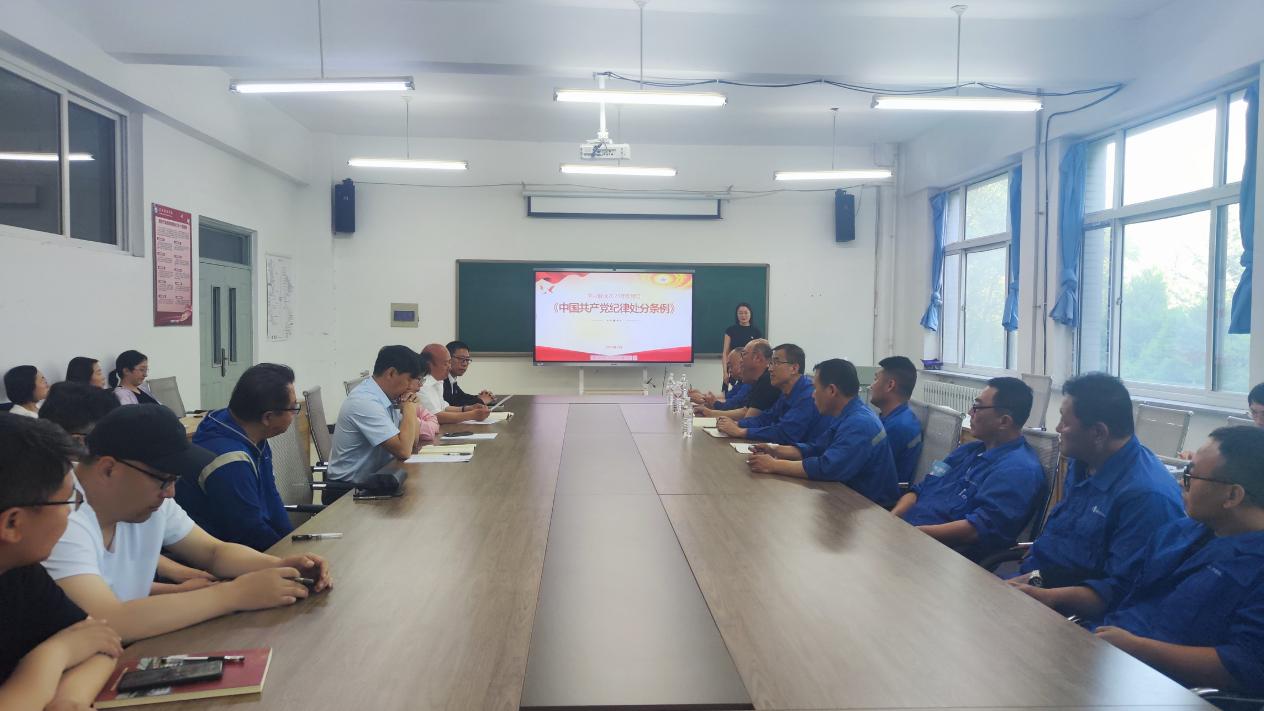 为深入学习贯彻习近平总书记关于党的自我革命的重要思想,全面落实党的二十大和二十届中央纪委三次全会精神及全省警示教育会议精神,引导全体党员干部进一步强化纪律意识、加强自我约束,坚定拥护“两个确立”、坚决做到“两个维护”,6月5日,冶金与材料工程学院和钻具公司联合邀请校党纪学习教育宣讲团成员教立营老师于博思楼二区206会议室讲授以“深刻认识《中国共产党纪律处分条例》,准确把握《中国共产党纪律处分条例》主旨要义”为主题的专题辅导报告会。本次报告会由冶金与材料工程学院党总支书记陈福主持,学院全体教师党员和学生正式党员,钻具公司全体党员参会。