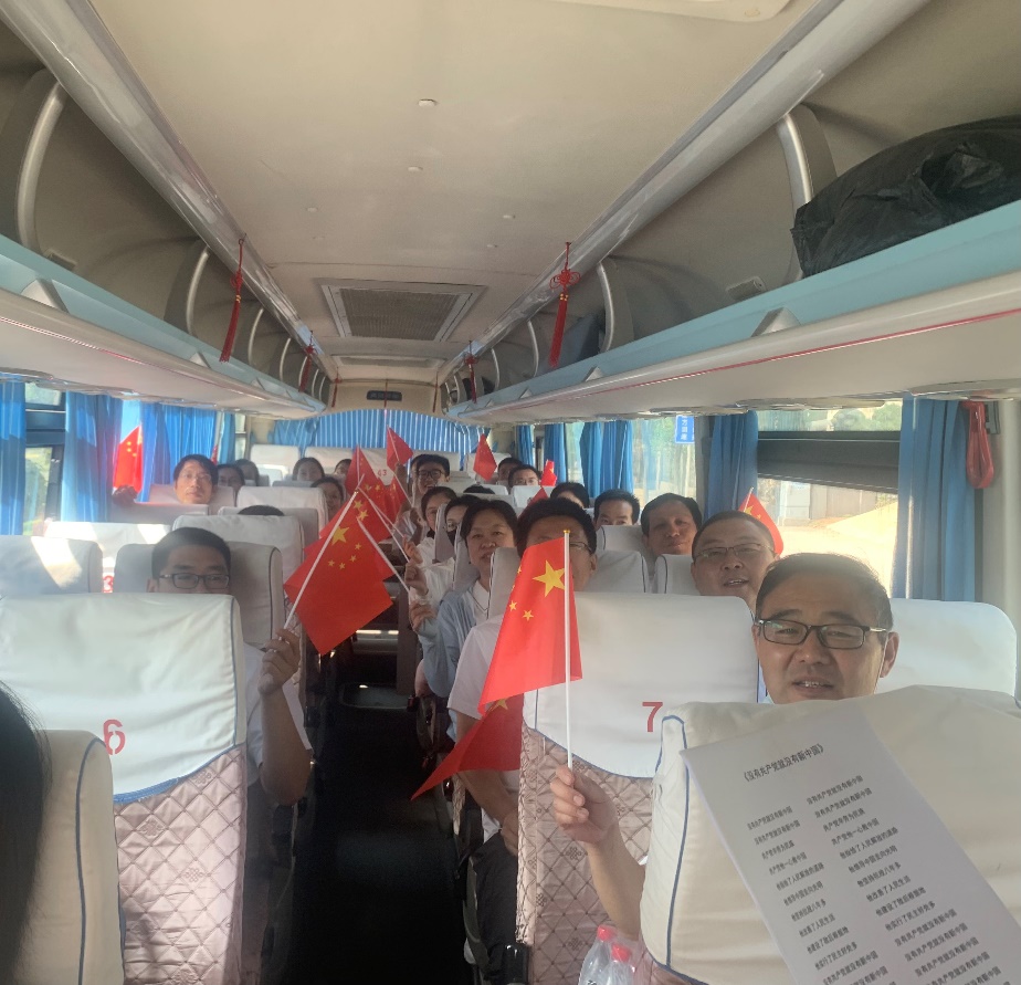 在前往李兆麟将军故居的车上,参加活动的全体人员齐唱红歌。大家挥舞手中的红旗,歌声嘹亮充满激情,以一首“没有共产党,就没有新中国”开启了主题党日活动的红色教育之路。