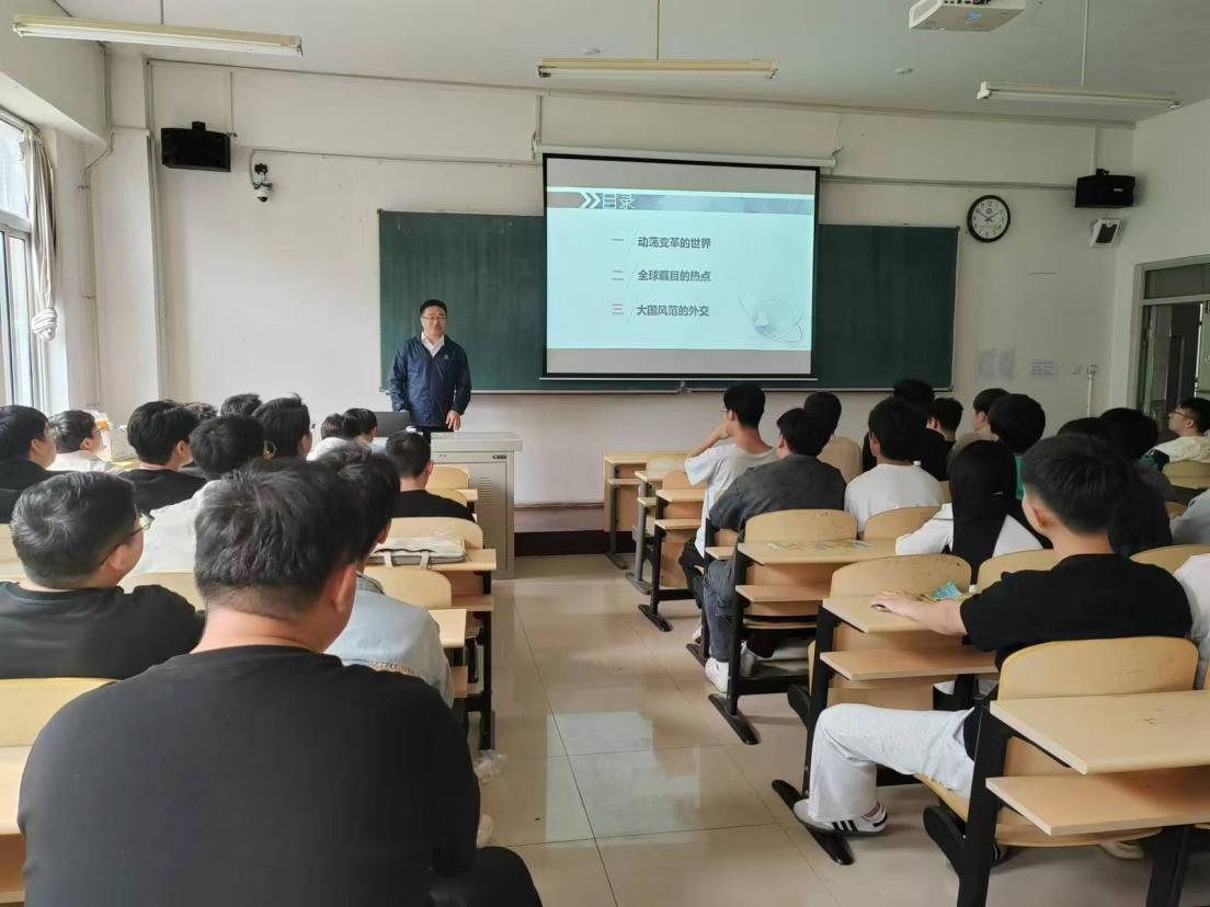邢文战的授课题目为《当前国际形势与中国外交工作》。他从动荡变革的世界、全球瞩目的热点、大国风范的外交等三个方面为同学们分析了当前的国际形势、中国的外交政策以及当前所面临的发展机遇与挑战。在帮助学生认清国内外政治形势、提高思想认识的同时,思考如何将个人的小我融入祖国和人民的大我,成为堪当民族复兴重任的时代新人。