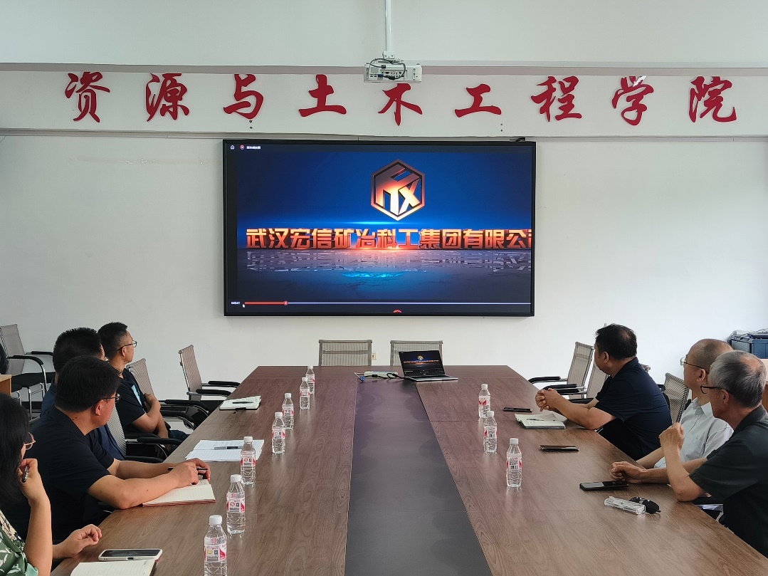 7月5日,武汉宏信矿冶科工集团有限公司总经理胡卫华,董事会秘书、总经理助理张宁一行来到资源与土木工程学院洽谈有关学生实习和就业工作。资源与土木工程学院院长邢文战,副院长范海英、王喜刚及相关人员参加座谈,学院原院长、退休教师张敢生教授参加座谈会。