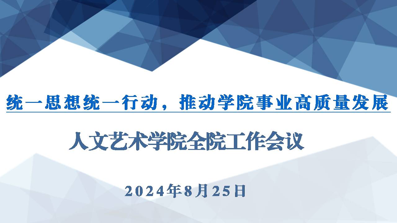8月25日,为明确新学期的工作目标与方向,凝聚全院力量,开学第一天,人文艺术学院召开了以“统一思想,统一行动,共促学院事业高质量发展”为主题的全院工作会议。会议由院长李春燕主持,学院领导班子成员及全体教职工参加会议,共同研究谋划学院事业发展新篇章。
