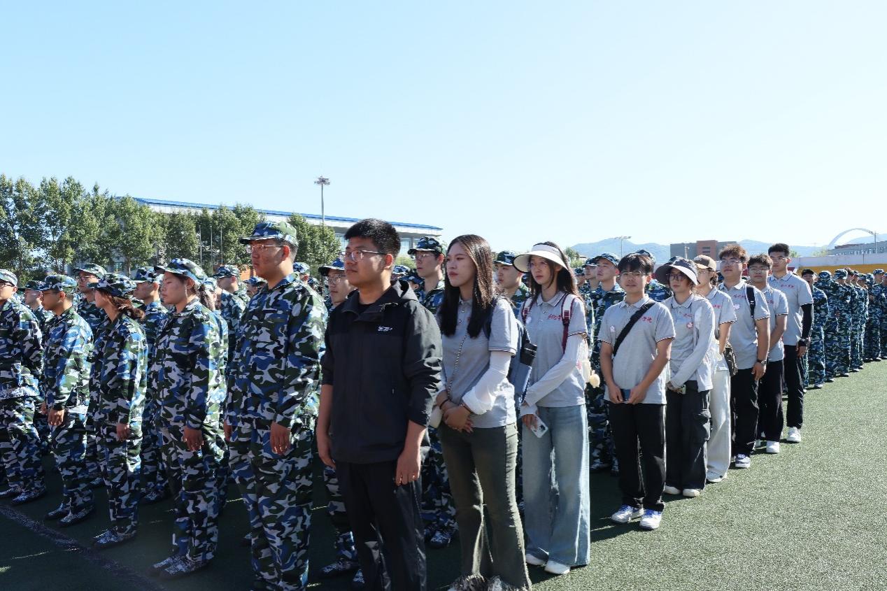 晨光初照下,一列列身着迷彩服的新生精神饱满,以严整的军容、昂扬的斗志迎接军训的挑战。他们挺拔如松,目光如炬,一遍遍地练习着军姿、队列、行进等基本动作。学院领导也时常来到训练现场,不仅关注同学们的训练进度与身体状况,更强调军训的纪律性,要求同学们以实际行动践行“严于律己、团结协作”的军训精神。